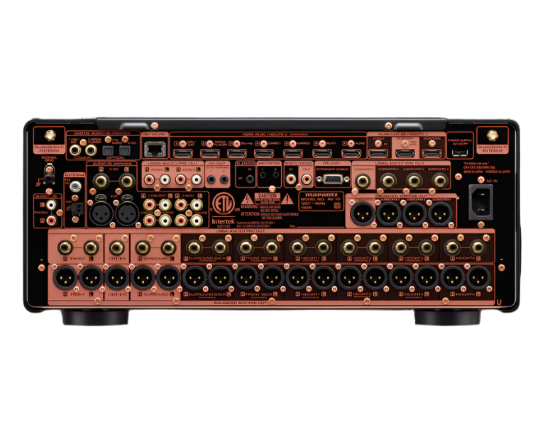 AV 10 represents the highest measure of performance and capability for reference-level home theater systems. Marantz Sound Masters meticulously tuned AV 10 for amazing performance with careful parts selection to create the most memorable home theater experiences possible.