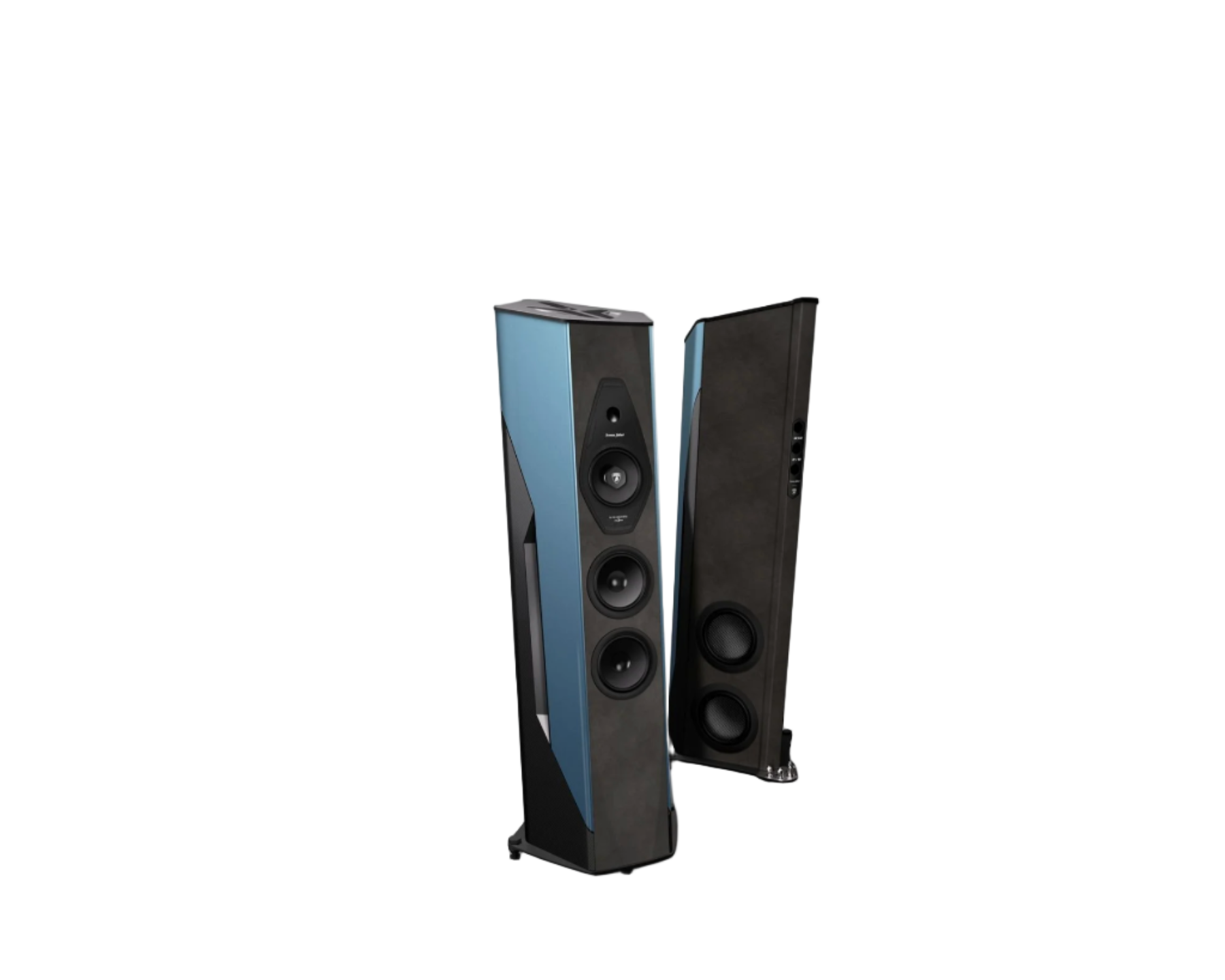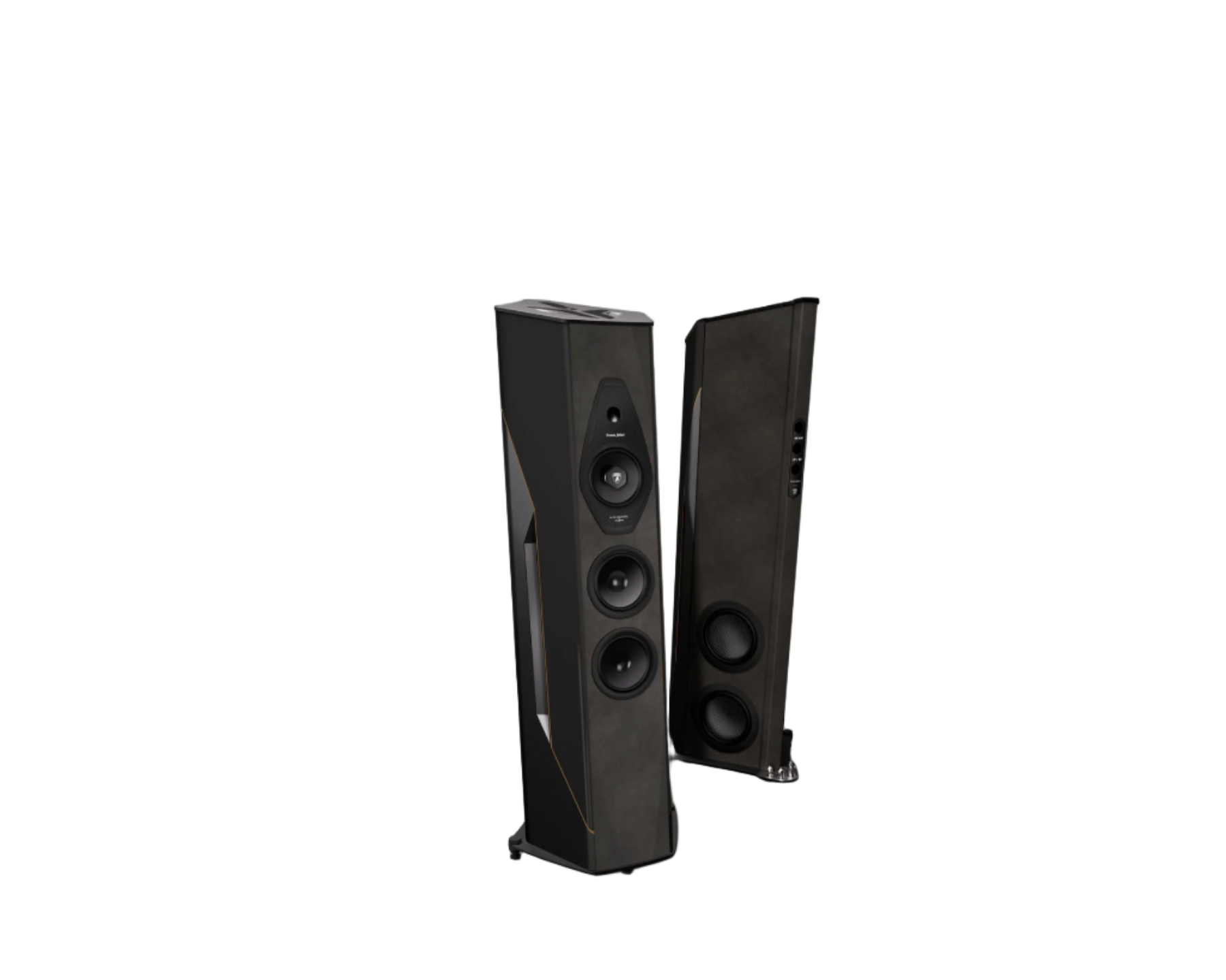 The five-sided rhomboid cabinet breaks traditional speaker form, designed to optimize acoustic performance and make a bold design statement.
