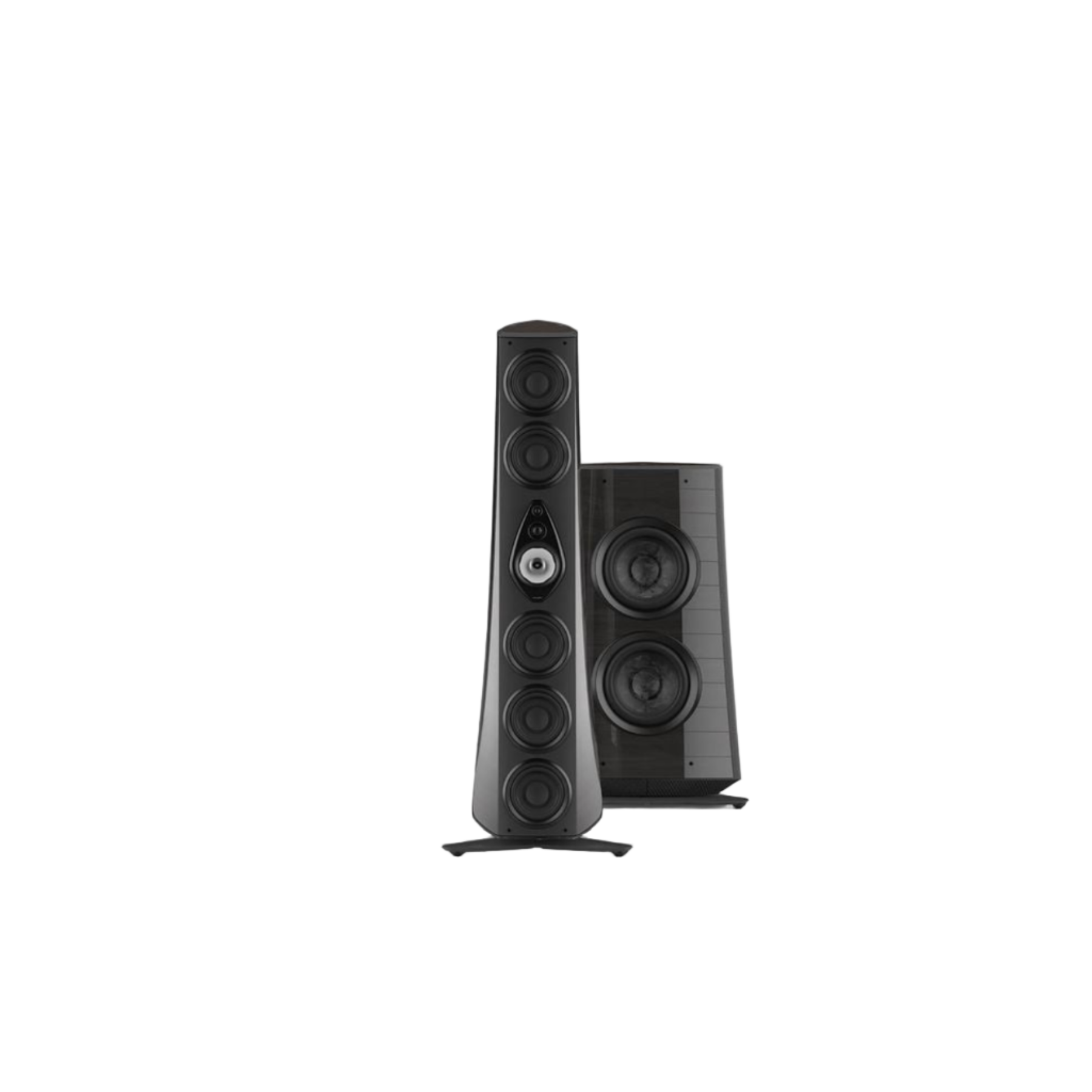Each of the two main columns of Suprema is a 4.5 ways system, featuring 2 back-firing speakers in addition to 8 front-firing speakers 4 dual drive woofers, 1 mid-woofer, 1 Camelia midrange, 1 mid-tweeter, 1 super tweeter. The back-firing speakers improve staging and dispersion while the combination of front speakers allows for unparalleled audio reproduction at every level of frequency.
